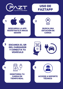 Para que tu experiencia sea aún más sencilla, hemos preparado una infografía con 5 pasos sobre cómo usar FAZT, desde la descarga de la app hasta la finalización de la carga. Además, puedes consultar nuestro manual con los pasos detallados haciendo click en ellos.